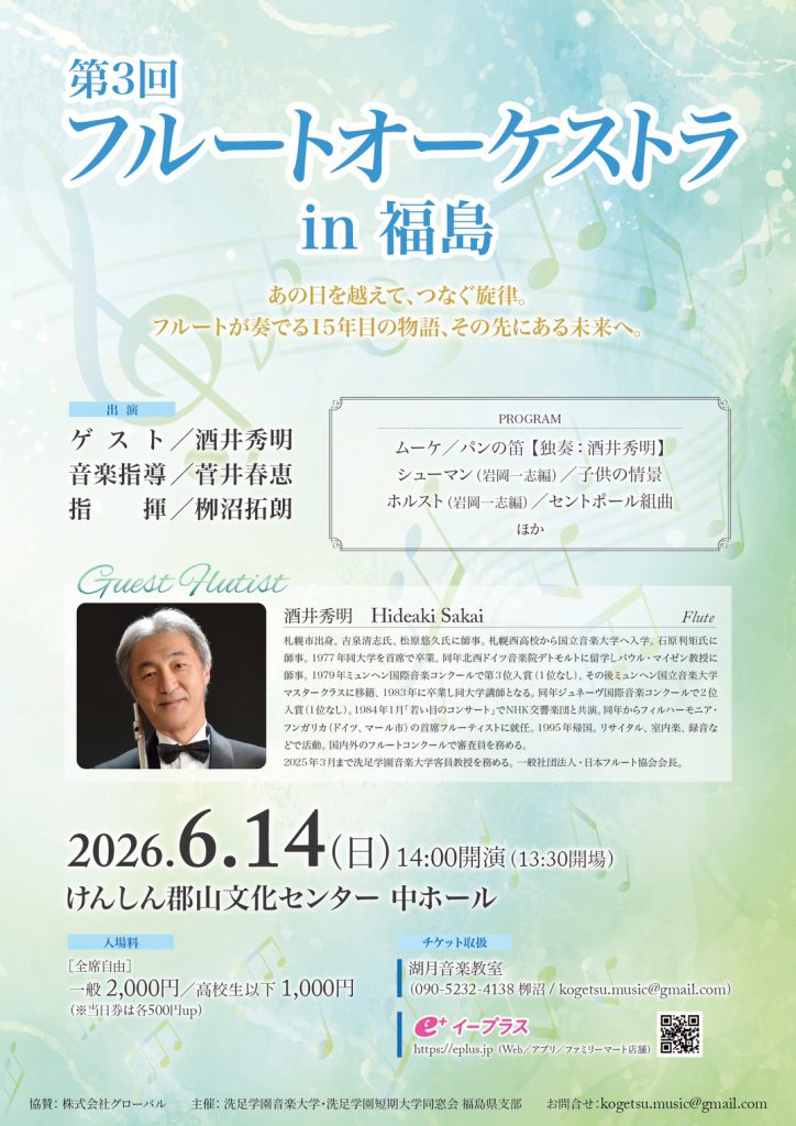 今年もフルートオーケストラの演奏会を郡山で開催します!